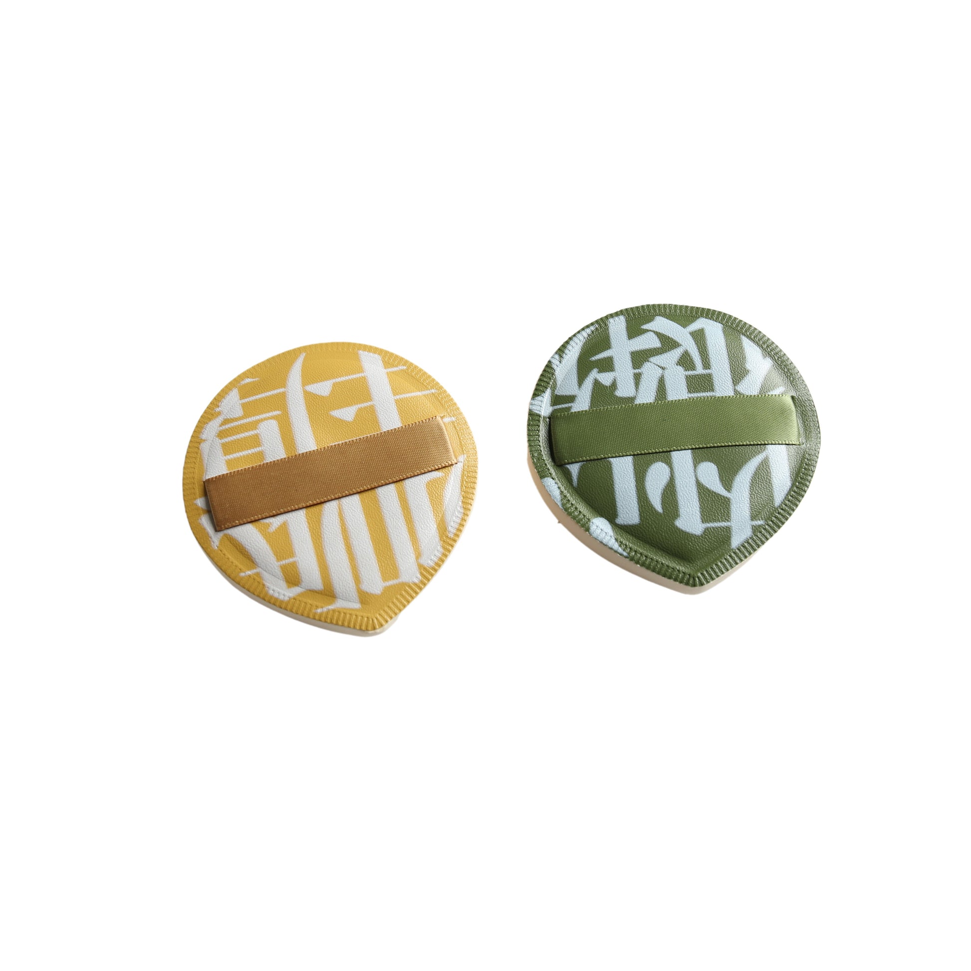 Spungetta ovale per fondotinta con fantasia e manico in raso cod: LM-024